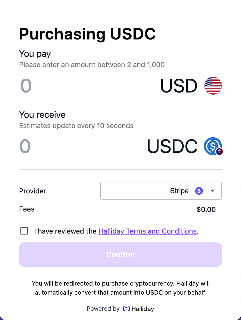 Halliday connects your Appchain to commerce. We solve the problem of first dollar spent on your chain, offering users a seamless onboarding experience and one-click acquisition, and management of any asset on any chain.